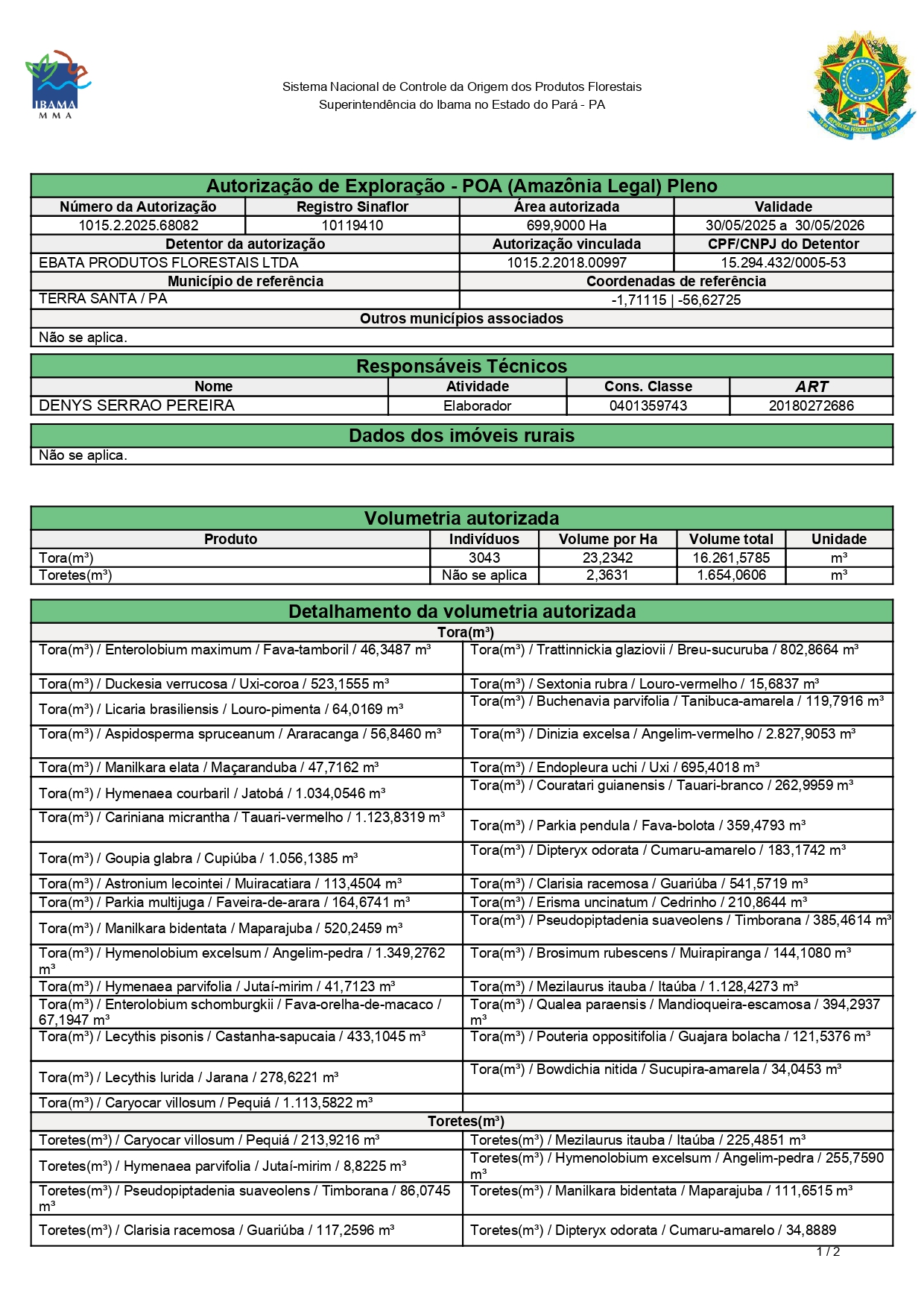– The forest exploitation permit is a document issued by the competent authority that authorizes the start of timber harvesting in the UPA and specifies the maximum volume per tree species.