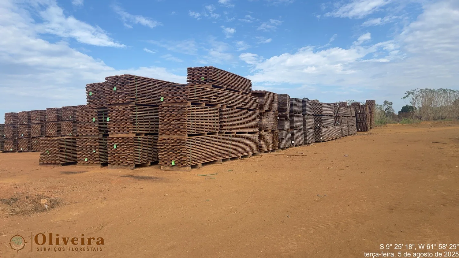 4. Lumber neatly stacked in the open air at the sawmill for preliminary drying.