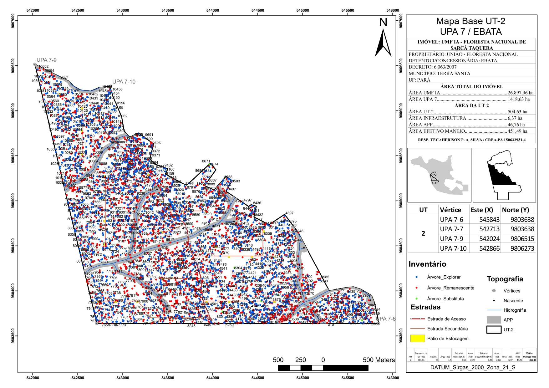 1. Map/inventory with marked trees and protected areas: